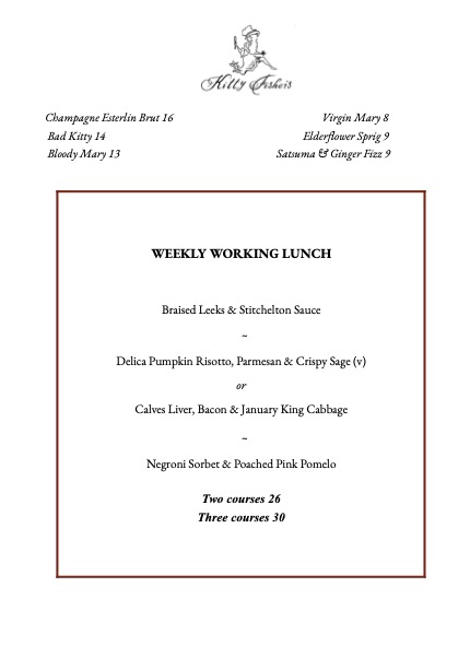 Our Working Lunch set menu changes weekly.